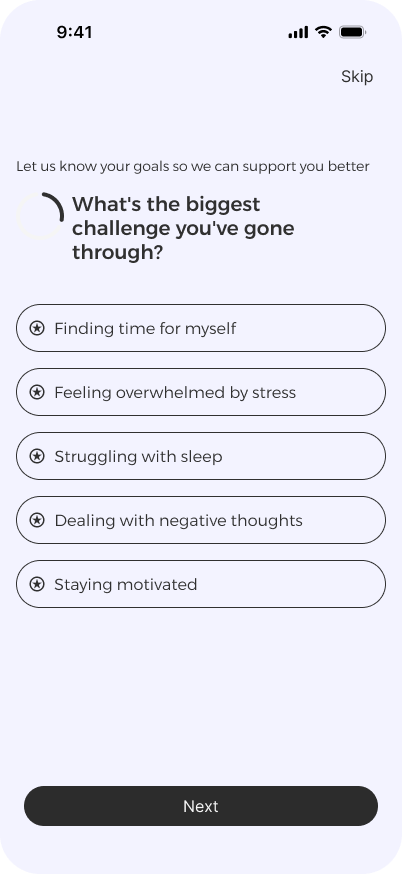 A wellbeing app that helps users track their emotional state throughout the day and receive personalised guidance. By combining self-reflection with AI, the app recommends tailored exercises based on how users are feeling, supporting emotional balance and daily resilience.